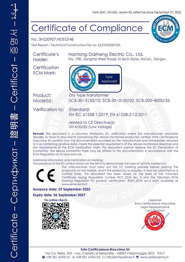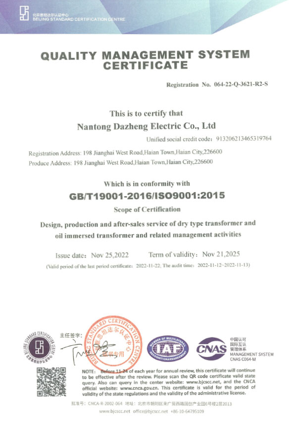 The Certifications Dazheng has gained throughout the years are a visible proof of our commitment: CE, ISO and more.